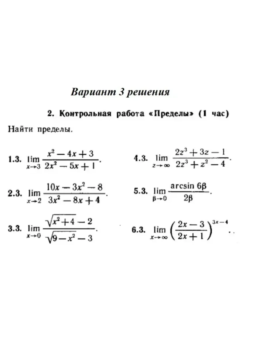Ответы на КР Пределы с. 255 вариант 3 Рябушко часть 1