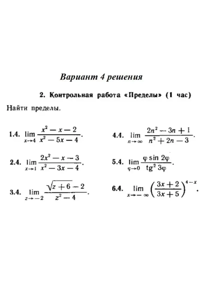 Ответы на КР Пределы с. 255 вариант 4 Рябушко часть 1