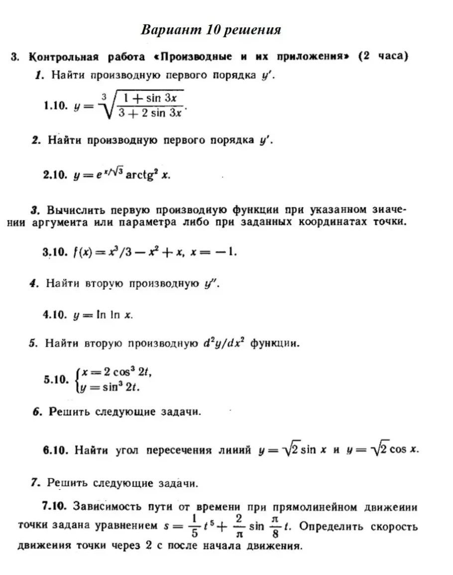 Решения 7-и заданий на тему "Производные и их приложения" Контрольная работа на стр. 260 Рябушко части 1 вариант 10