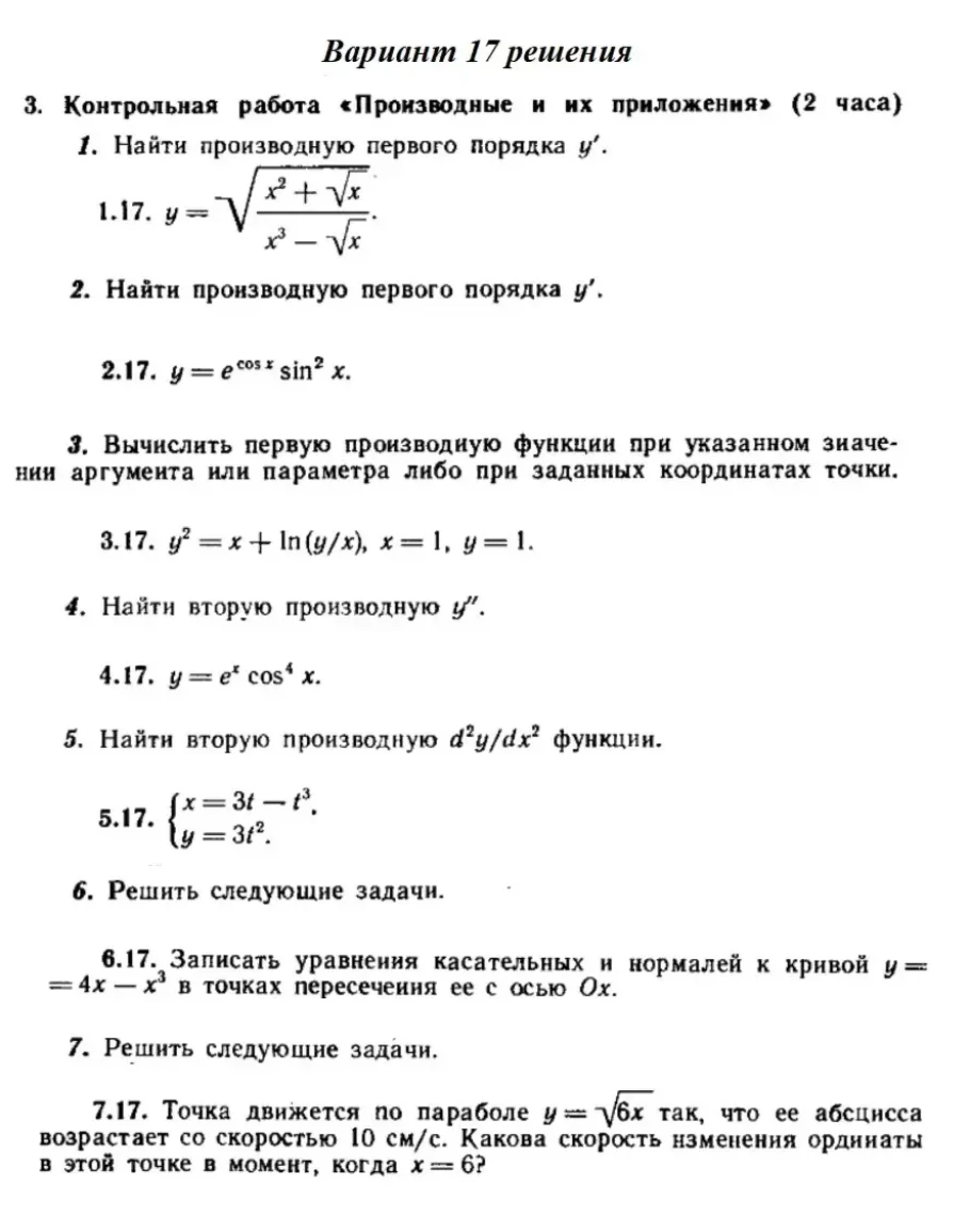 Ответы на КР Производные с. 260 вариант 17 Рябушко част
