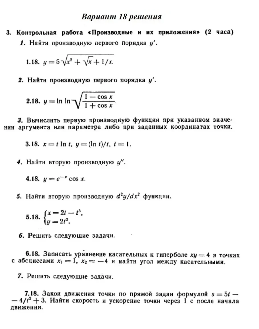 Решения 7-и заданий на тему "Производные и их приложения" Контрольная работа на стр. 260 Рябушко части 1 вариант 18