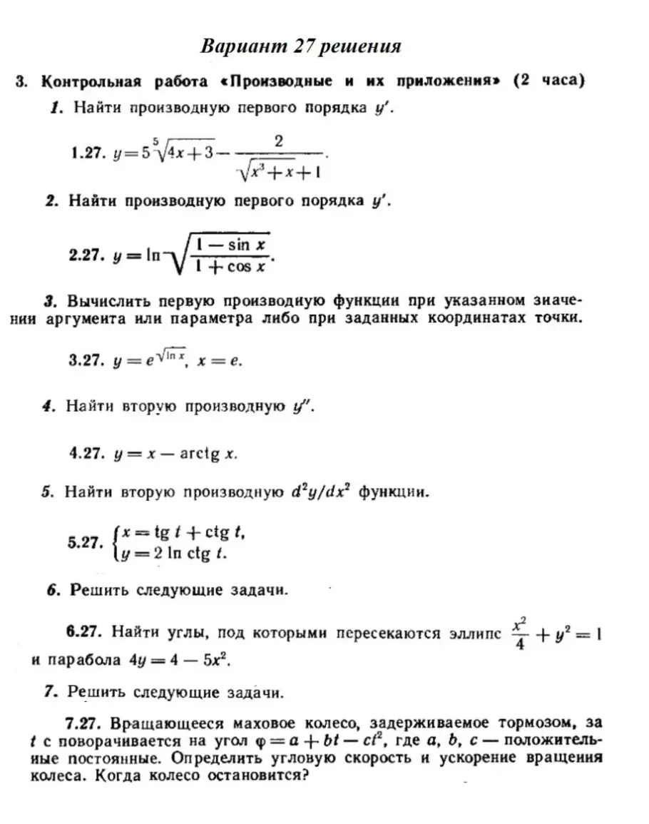Решения 7-и заданий на тему "Производные и их приложения" Контрольная работа на стр. 260 Рябушко части 1 вариант 27
