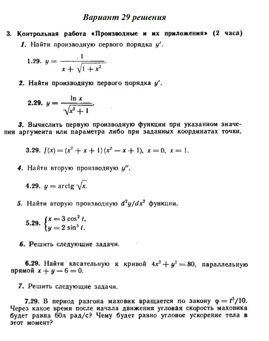 Решения 7-и заданий на тему "Производные и их приложения" Контрольная работа на стр. 260 Рябушко части 1 вариант 29