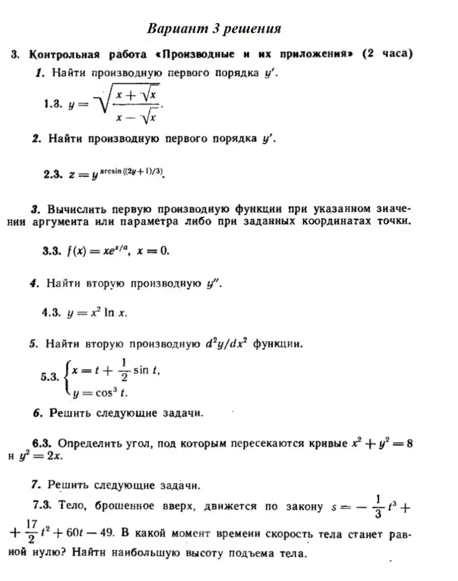 Ответы на КР Производные с. 260 вариант 3 Рябушко часть