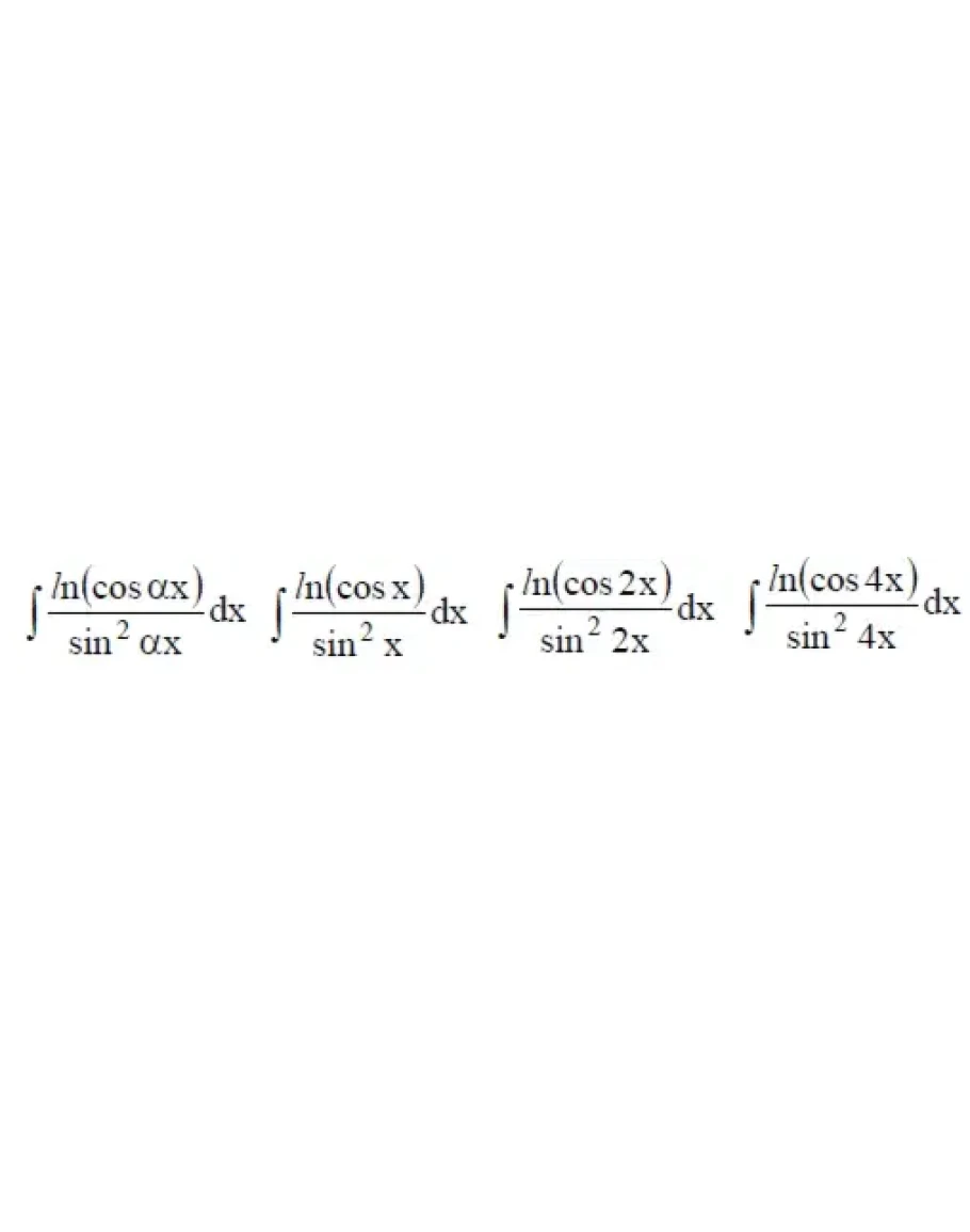 ∫ln(cosαx)/sin^2(αx)dx, ∫ln(cosx)/sin^2(x)dx, ∫ln(cos2x)/sin^2(2x)dx, ∫ln(cos4x)/sin^2(4x)dx