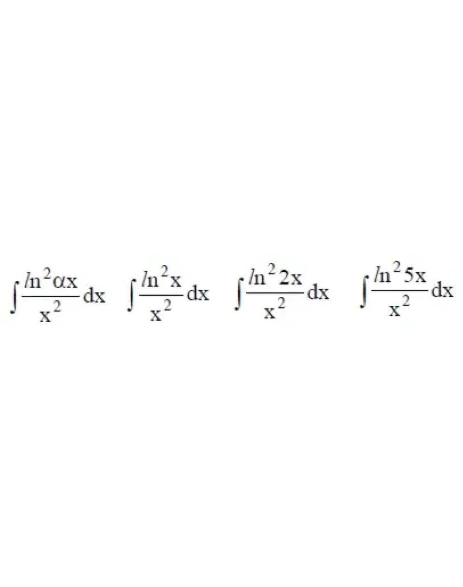 Решение неопределенного интеграла вида ∫ln^2(αx)/x^2dx методом интегрирования по частям, где α принимает значения 1,2,3,4,5...n