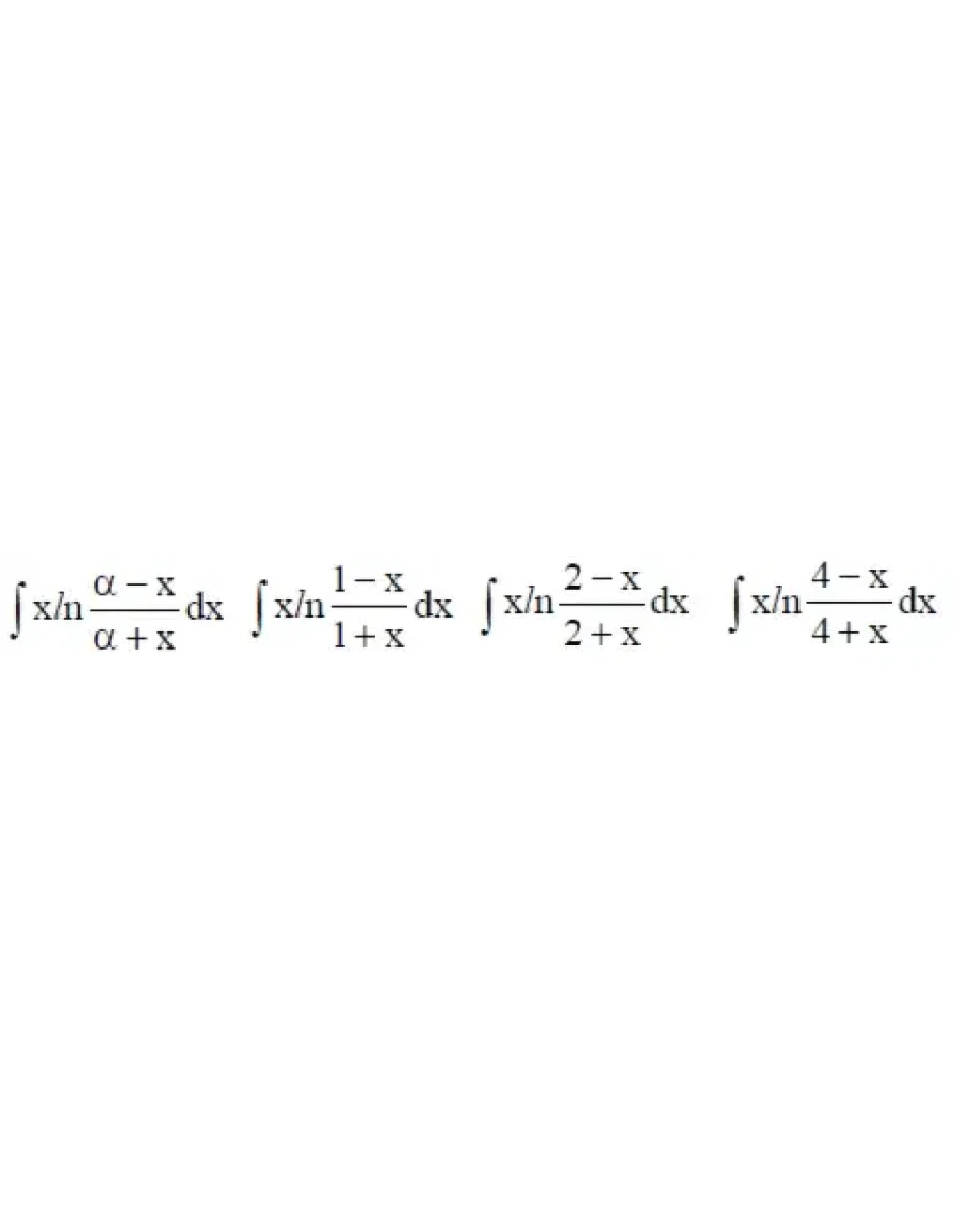 ∫xln(α−x)/(α+x)dx, ∫xln(1−x)/(1+x)dx, ∫xln(2−x)/(2+x)dx, ∫xln(4−x)/(4+x)dx