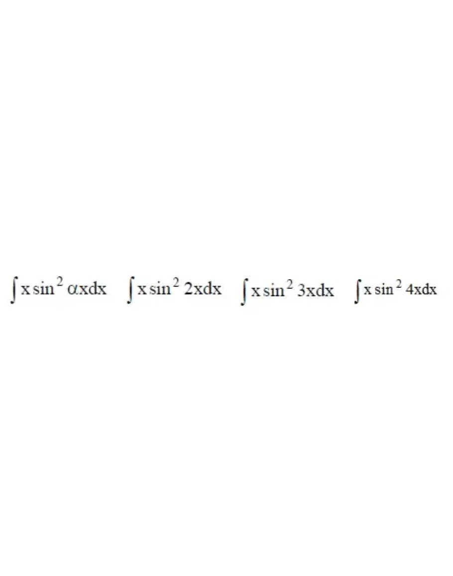 ∫xsin^2(αx)dx, ∫xsin^2(2x)dx, ∫xsin^2(3x)dx, ∫xsin^2(4x)dx