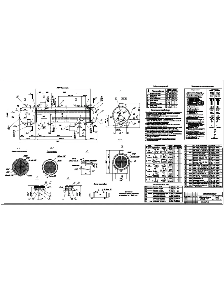 Чертежи подогревателя пароводяного ПП1-53-7-IV по ОСТ 108.271.105. Чертеж общего вида, сборочные чертежи, чертежи деталей. Формат DWG.