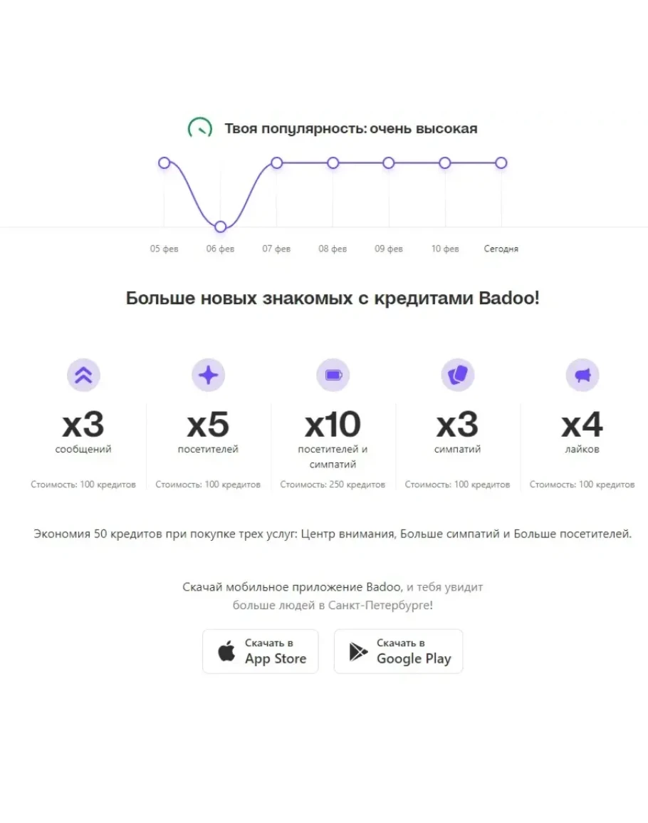 ❗️Кредиты можно использовать для поднятия популярности анкеты, увеличения количества лайков и сообщений. А именно: