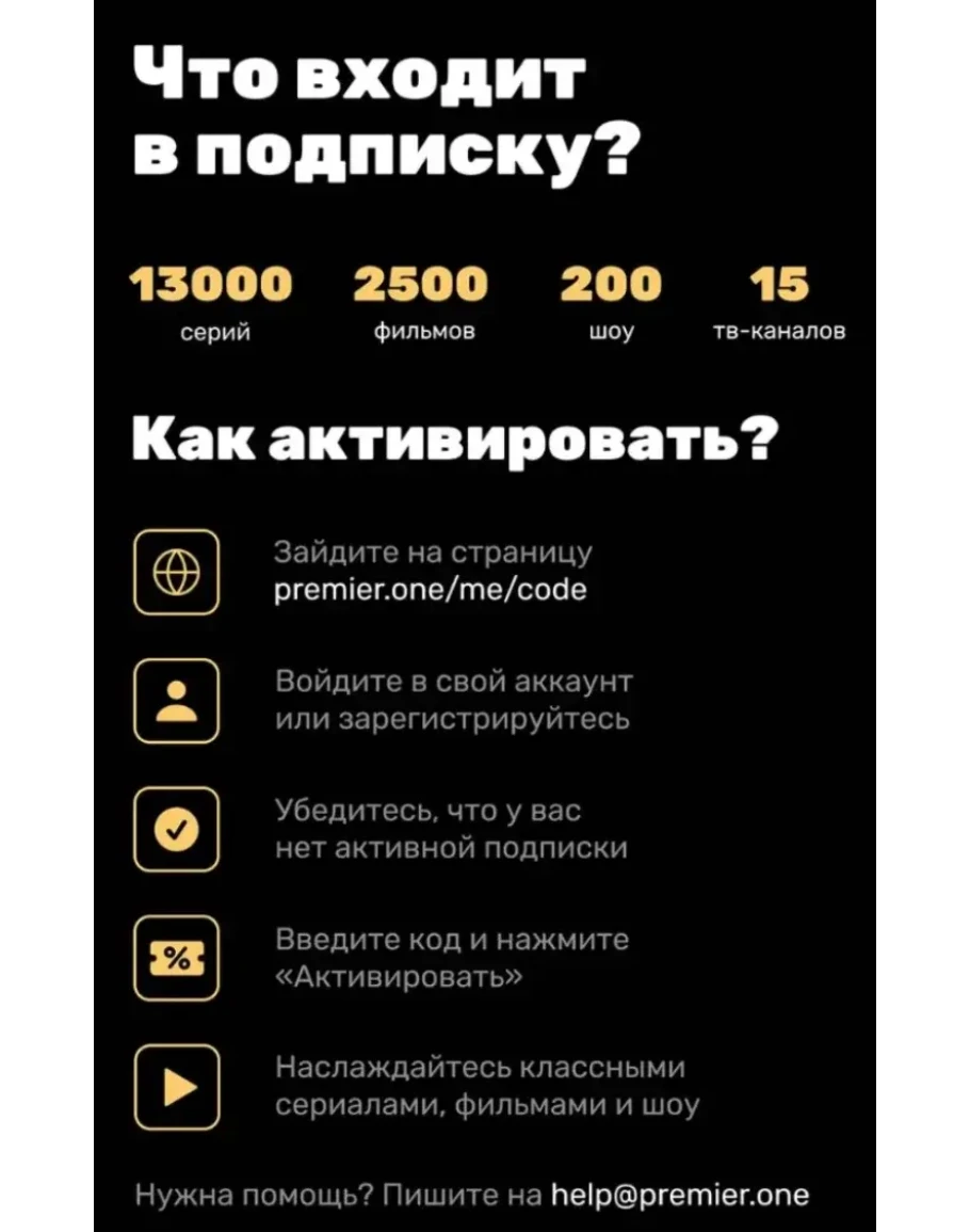 Подписка КОД онлайн-кинотеатр PREMIER.ONE 6 ЛИЦЕНЗИЯ