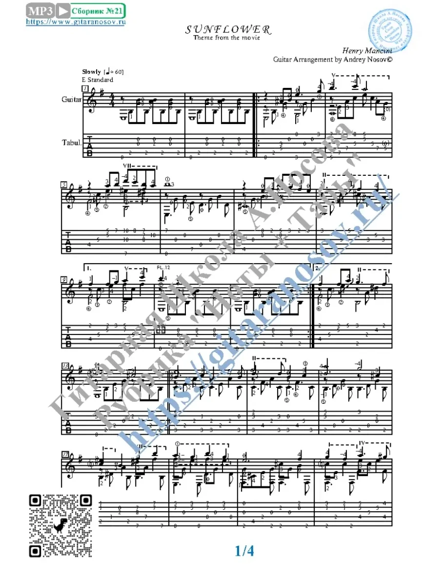 Товар включает в себя ноты с табулатурой и без табулатуры (в одном PDF). Прилагается ссылка на прослушивание / скачивание mp3.