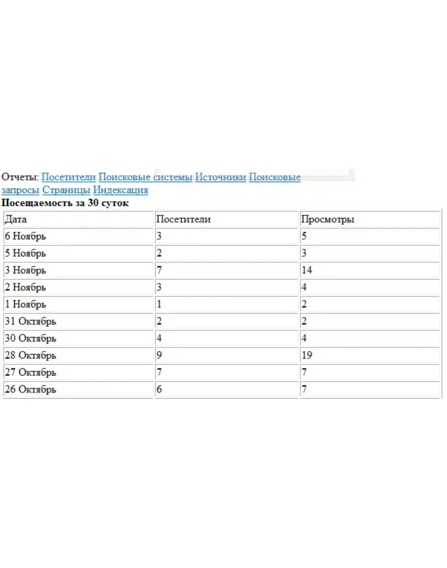 - Наглядная таблица посещаемости сайтов, а так же динамика роста по сравнению с предыдущим днем