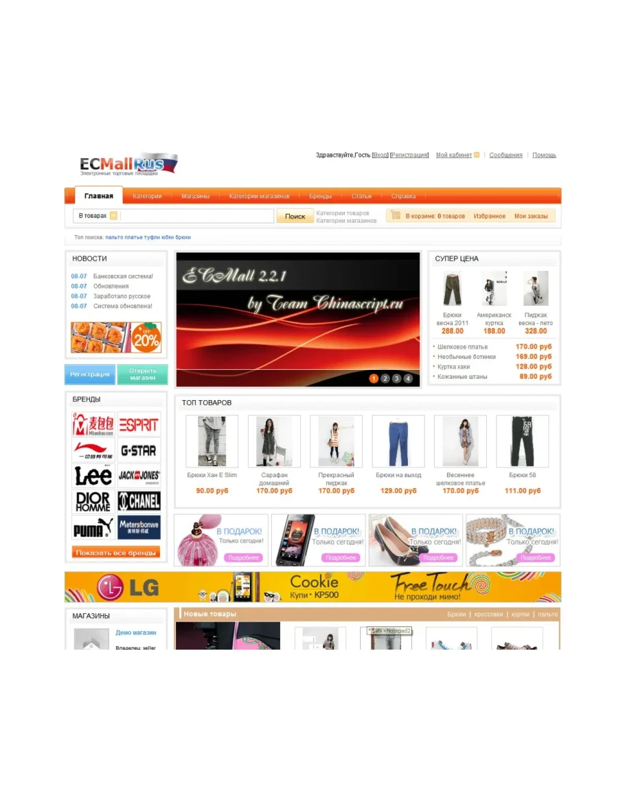 ECMall - это системы электронной коммерции (именуемое, как ECMall - многопользовательский магазин). Данный скрипт дает возможность создать свой личный магазин каждому зарегистрированному пользователю за считанные минуты (предоставление электронных торговых площадок пользователям за определенный тариф). Система в автоматическом режиме может создавать субдомен для каждого магазина пользователя! В результате вы получаете быстрорастущую и перспективно развивающуюся сеть полноценных магазинов пользователей.