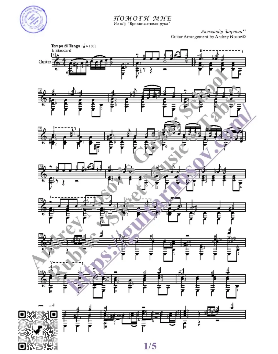 Товар состоит из двух частей (pdf / png*): 1 – Ноты с табулатурой; 2 – Ноты без табулатуры. Прилагается ссылка на скачивание mp3.