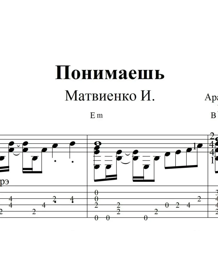 Ноты и табы к переложению для одной гитары на композицию "Понимаешь"