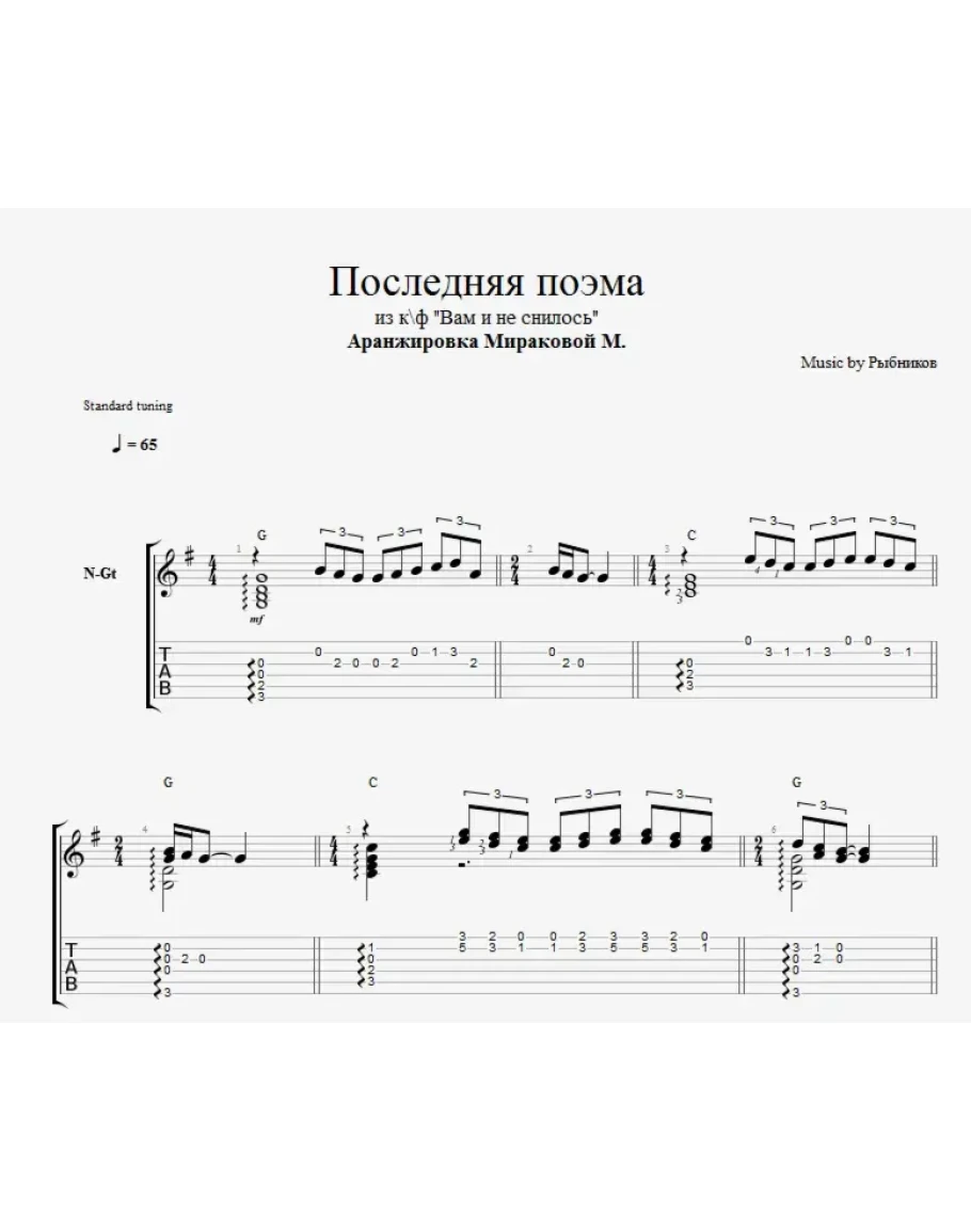 Авторская аранжировка для шестиструнной гитары от Марины Мираковой на композицию "Последняя поэма" из к/ф "Вам и не снилось...".