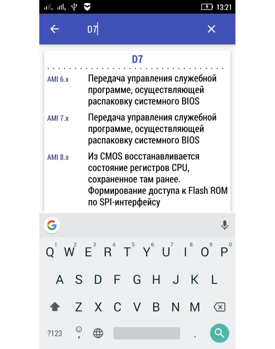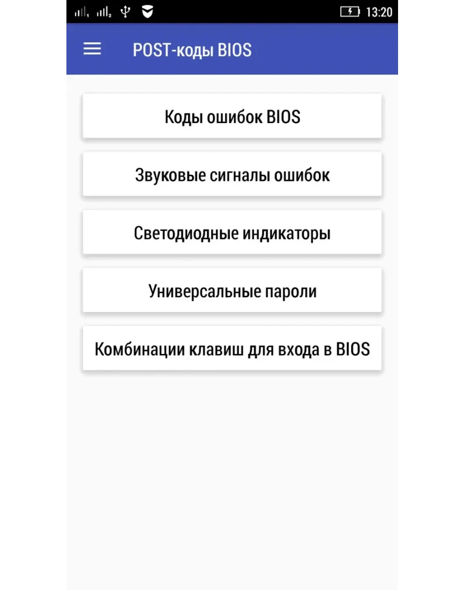 Приложение "POST-коды BIOS" представляет собой справочник с удобным интерфейсом для расшифровки кодов ошибок BIOS современных материнских плат разных производителей.