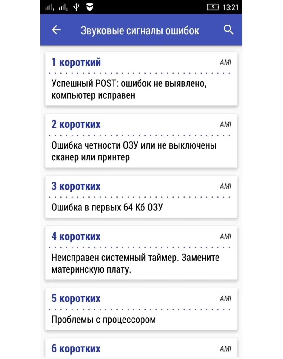 Кроме кодов ошибок приложение "POST-коды BIOS" даёт возможность расшифровать звуковые сигналы, подаваемые материнскими платами при загрузке.