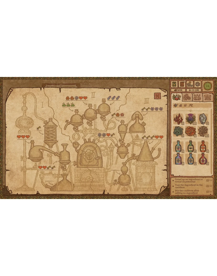 Прокладывайте маршрут по алхимической карте, чтобы скомбинировать эффекты. Но и о здравом смысле не забывайте: клиентов на ядовитое лечебное зелье не найти... или же?