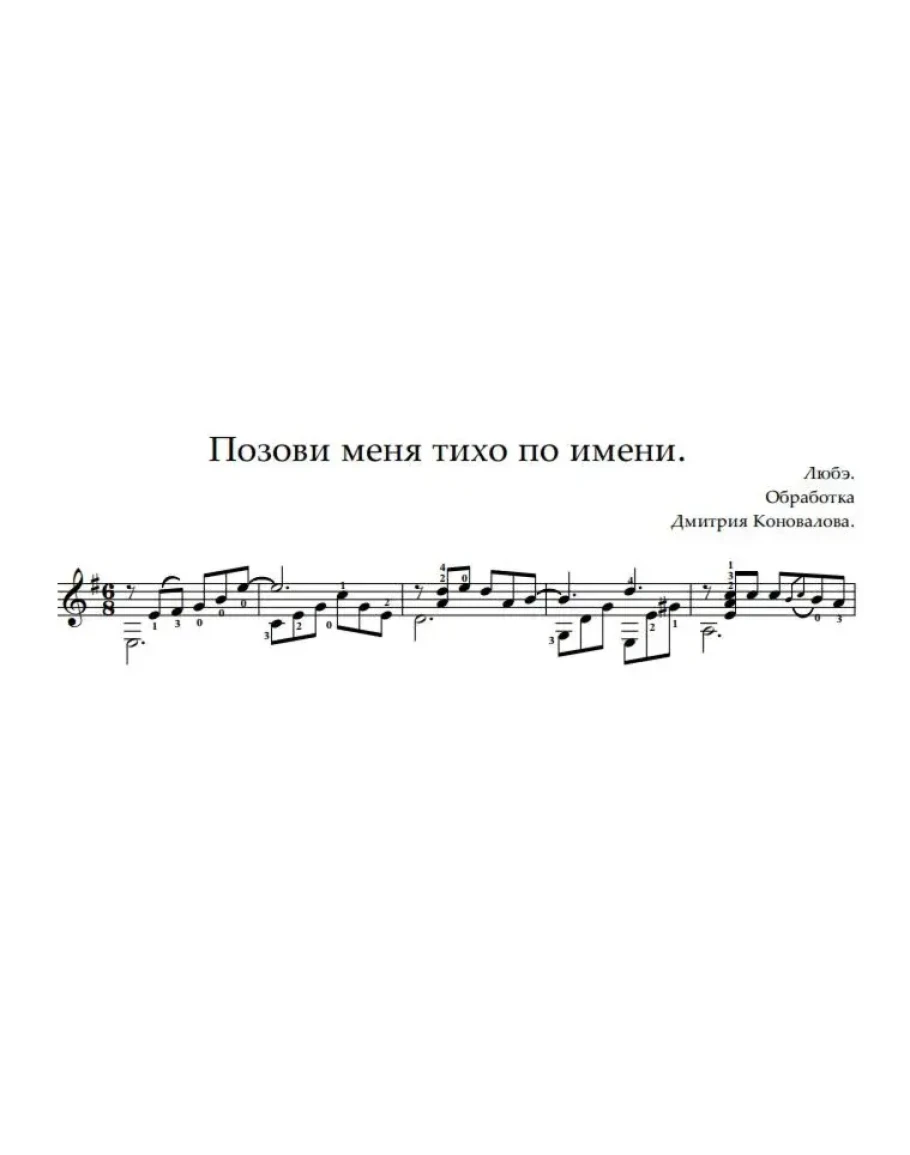 Позови меня тихо по имени. Ноты и табы для гитары.