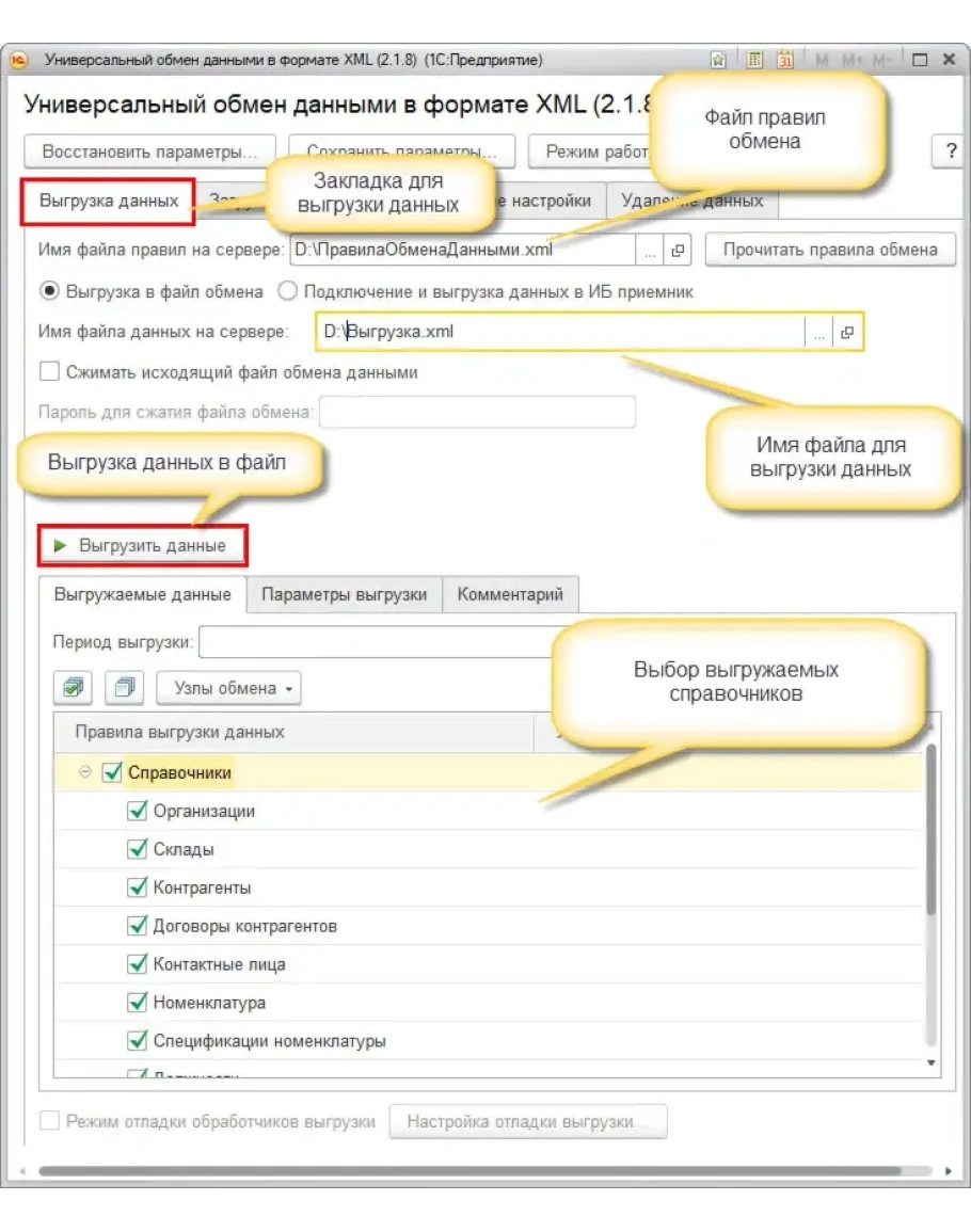 С помощью правил обмена возможна выгрузка следующих справочников из БП 3.0 в УПП 1.3: