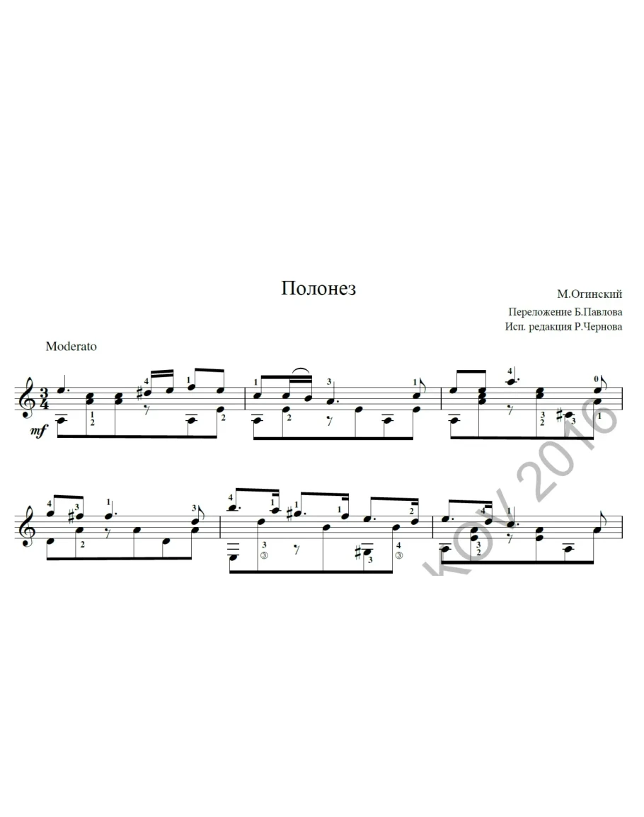 Ноты для гитары Полонез М.Огинский исполнитель Р.Чернов