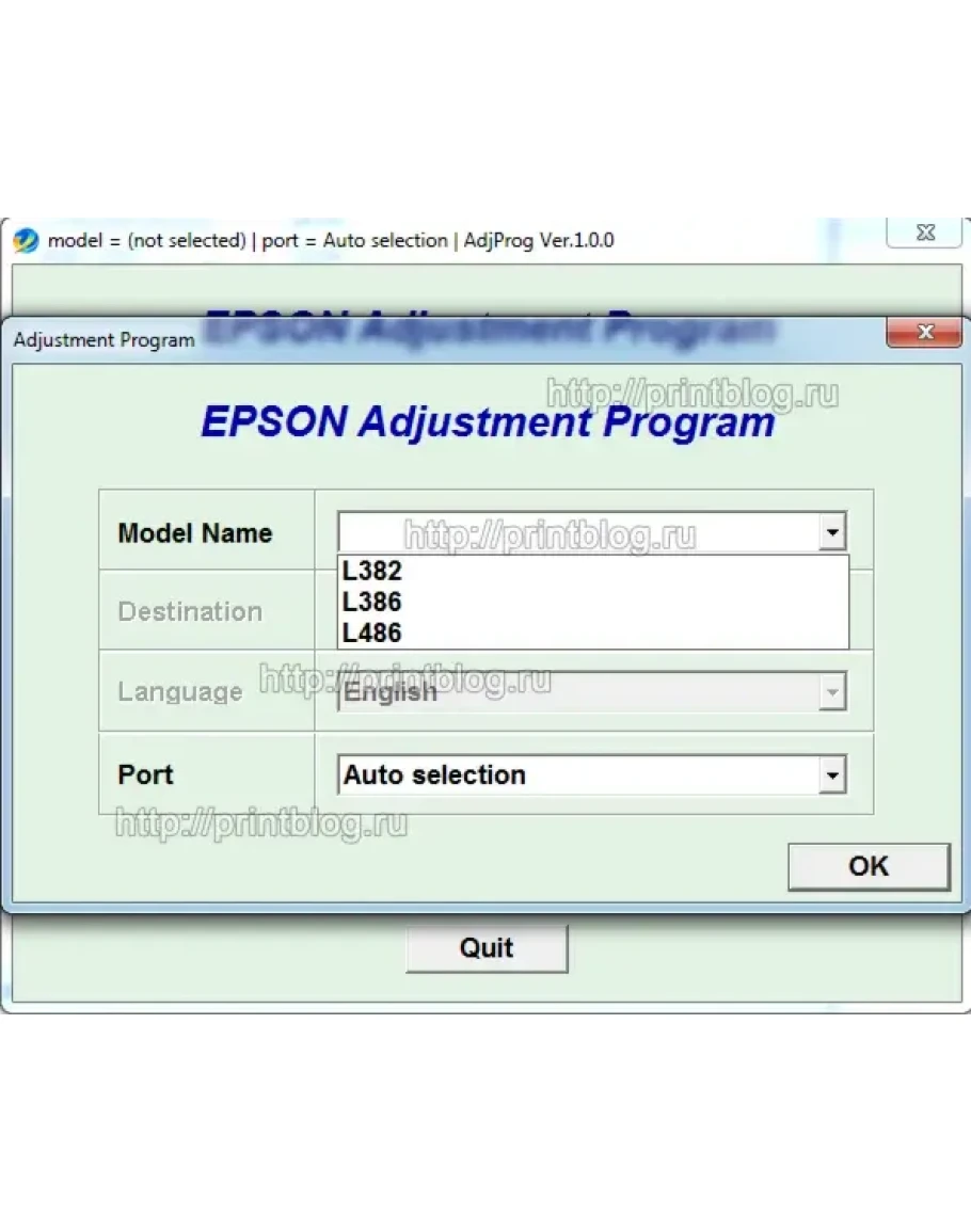 Внимание! Adjustment program Adjustment program Epson L382, L386, L486 (EURO, CIS)
