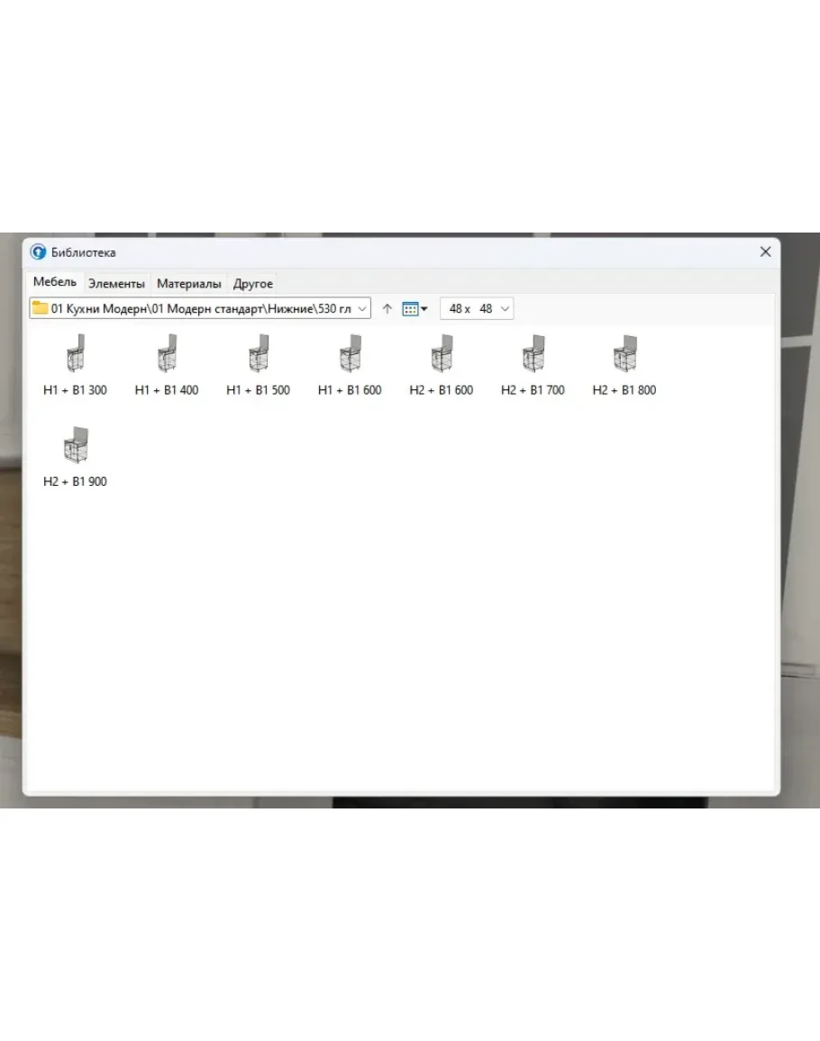 В комплекте идёт большая новая библиотека кухонь и шкафов 2024 года.