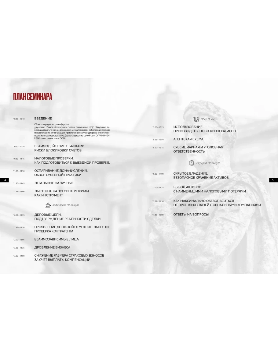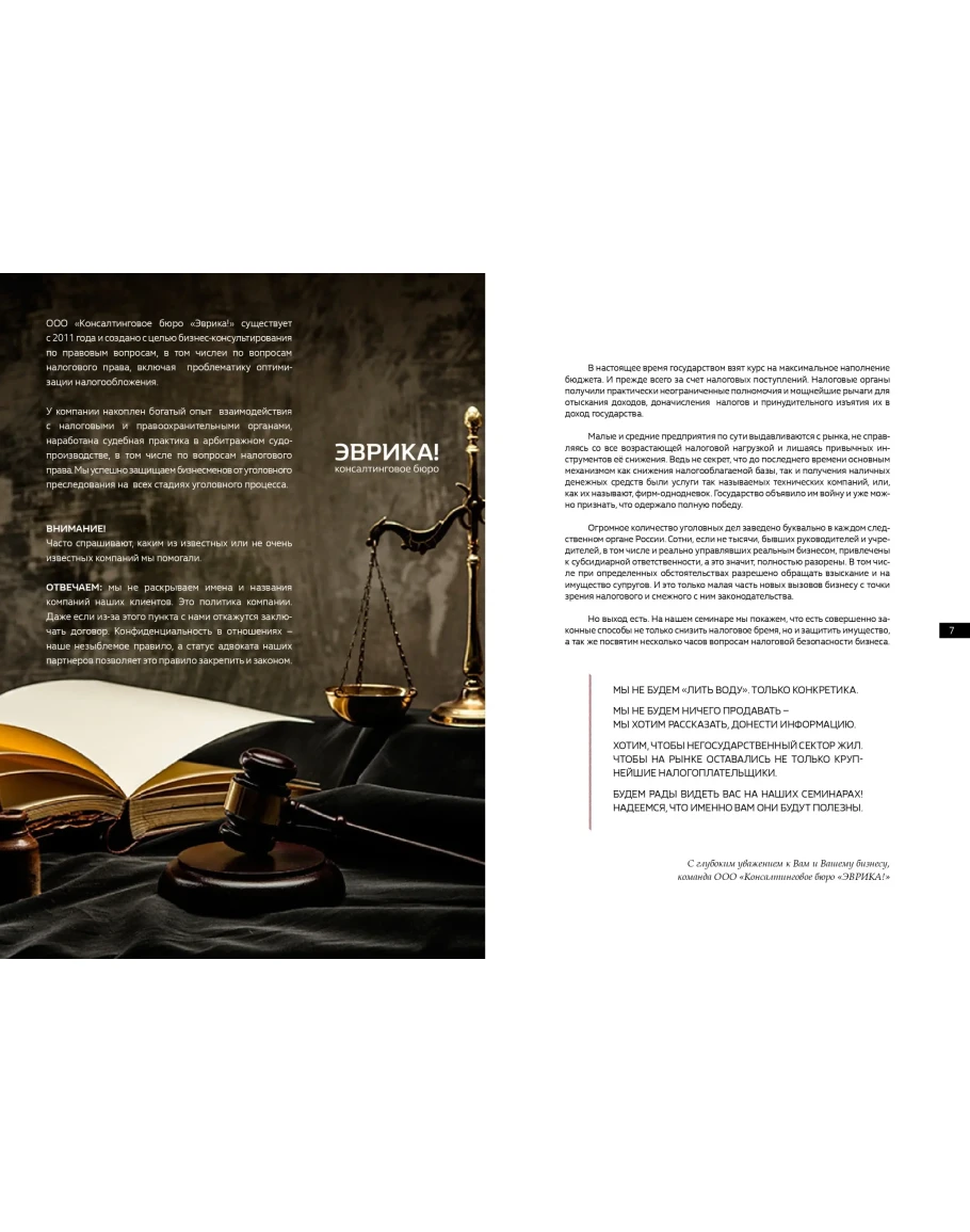 🔸" Методы защиты бизнеса и первых лиц компании, включая руководителей, собственников и бухгалтеров, при возможных проверках.