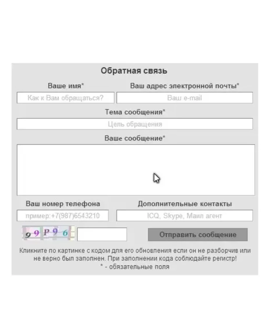 Поля формы проверяются на заполнение и форма не отправится пустой. Кроме этого проверяется правильность заполнения email. Установлена капча.