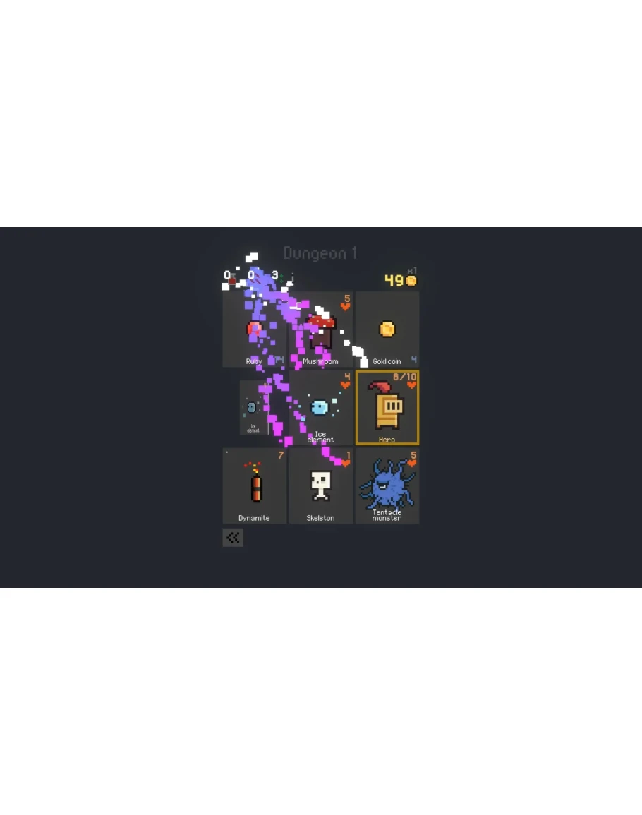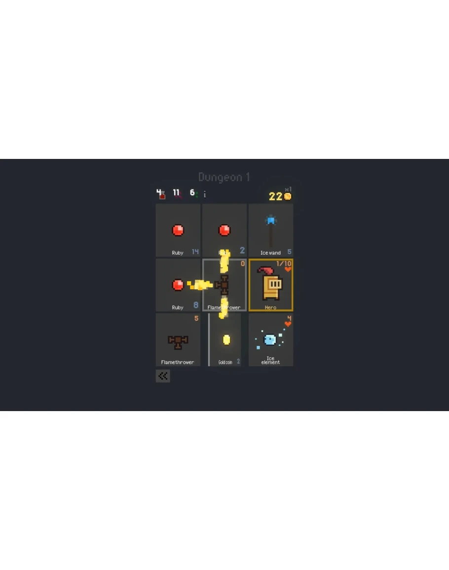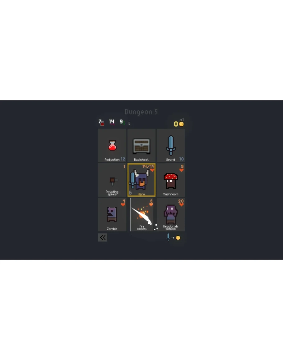 В Dungeon Cards карта героя перемещается по полю из 9 карт. Чтобы сделать ход, нужно выбрать соседнюю карту, которая взаимодействует с картой героя и исчезает. Карты с монстрами и ловушками уменьшают здоровье героя, карты с лечением... лечат его, карты с лутом дают золото, карты с чупакаброй... не будем о грустном.