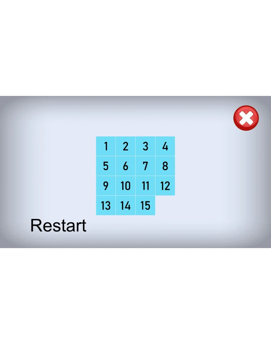Небольшая игра-головоломка. Суть игры проста, перемещайте пронумерованные кубики, чтобы расположить их в порядке возрастания от одного до пятнадцати, имея только один незанятый сектор. Сложность возрастает с каждой построенной последовательностью. Вам придется много думать, чтобы привести все в правильный порядок.
