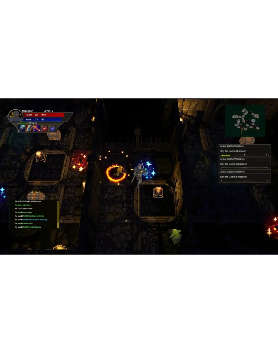 Гоблины прорыли туннели в катакомбах под замками земли. Племена заселяются, и вскоре их численность переполнится и хлынет в близлежащие города. Защитите свой народ и очистите грязь, которая сейчас населяет глубины внизу. Люди нуждаются в вас, возьмите в руки оружие и проложите себе путь через 10 огромных уровней, наполненных поворотами и поворотами. Выполните 30 заданий, чтобы избавить Землю от вторгающихся племен гоблинов и собрать все 900 магических предметов, чтобы укрепить свои силы. Ваш народ нуждается в своем герое, сражайтесь с гоблинами сегодня!