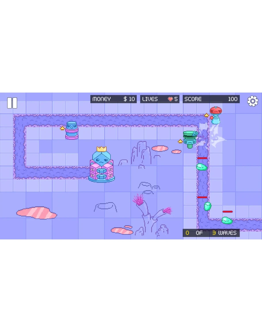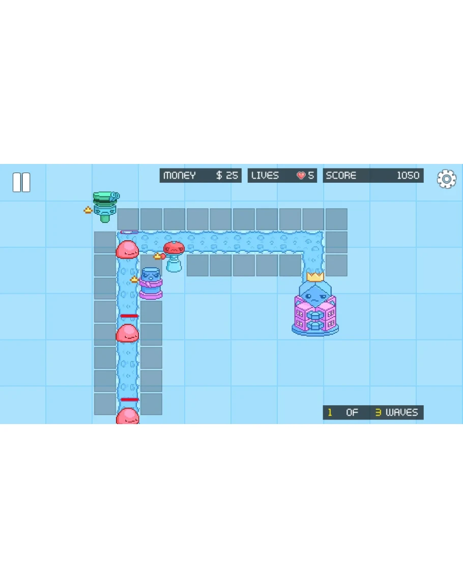 Это миниатюрная стратегия обороны башни. Игровой процесс заключается в том, чтобы не дать вражеским юнитам, приближающимся к волнам, добраться до нашей главной башни, установив оборонительные сооружения на пути движения врагов. Установленные защитные башни атакуют проходящих врагов в поле зрения и могут быть улучшены или перемещены за счет очков, набранных за убийство. Задача каждого уровня-продержаться определенное количество волн и защитить главную башню от разрушения.
