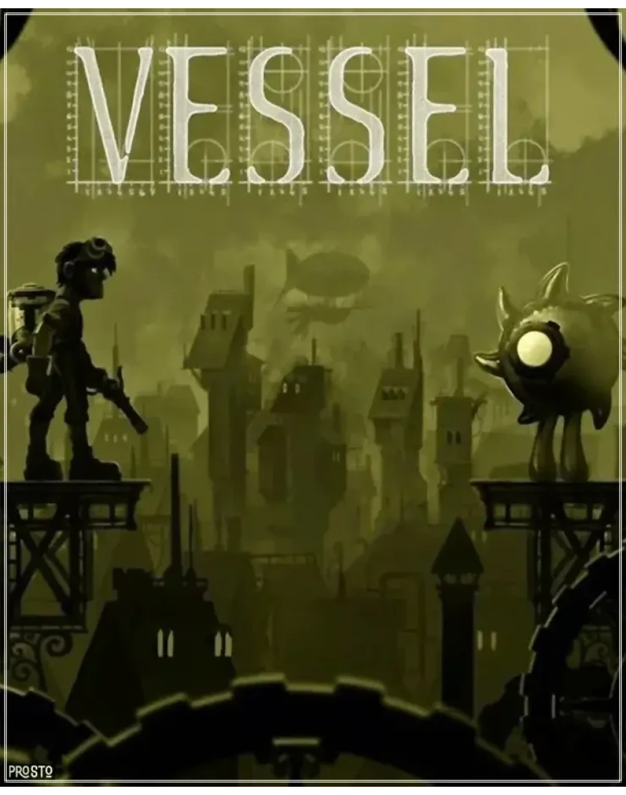 Vessel - весёлый паззл-платформер с элементами экшена и видом сбоку. События игры происходят в удивительном мире механических машин, которые захватили всё, и теперь создают хаос и разрушения. Молодой изобретатель Аркрайт бросает вызов техническому прогрессу, чтобы освободить мир и дать людям надежду.