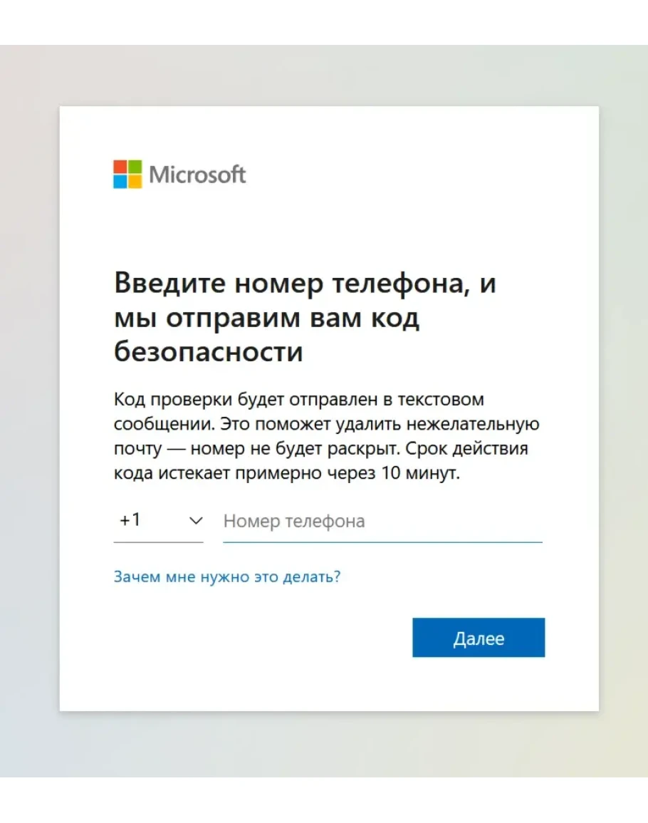 Нажмите «Далее», и мы отправим код подтверждения на ваш телефон . После ввода кода вы сможете вернуться в свою учетную запись."