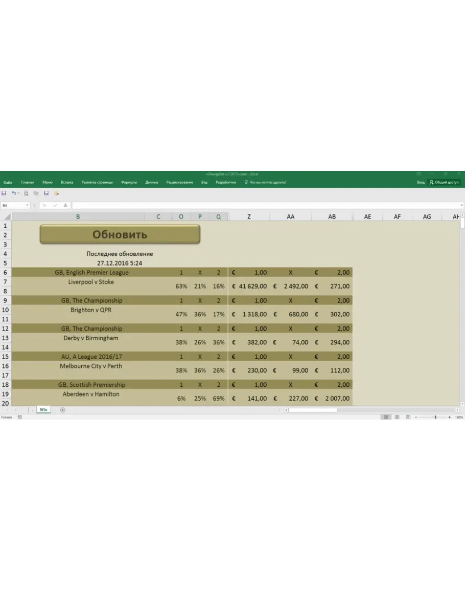 Предлагаю вам новейшую программу «ChangeBet v.7 2017», которая автоматически загружает все матчи по линии статистики и показывает денежные ставки на футбольные матчи по букмекерской линии. «ChangeBet v.7 2017» не имеет сегодня аналогов в интернете! По анализу «прогрузов» в данной программе можно делать выводы на предстоящие матчи, например, какой из них вызывает определенные подозрения, и, следовательно, негативно сказывается на уравнивании прибыли букмекерской конторы, вполне логичной ответной реакцией букмекерской конторы на денежный «прогруз» определенного коэффициента является его понижение. Причем степень понижения зависит от уровня «прогруза». При небольшом «прогрузе» измениться может только коэффициент, на который поставлено много денег, но если происходит крупный прогиб линии с существенным падением одного из коэффициентов, то и все остальные коэффициенты, соответственно также меняются.