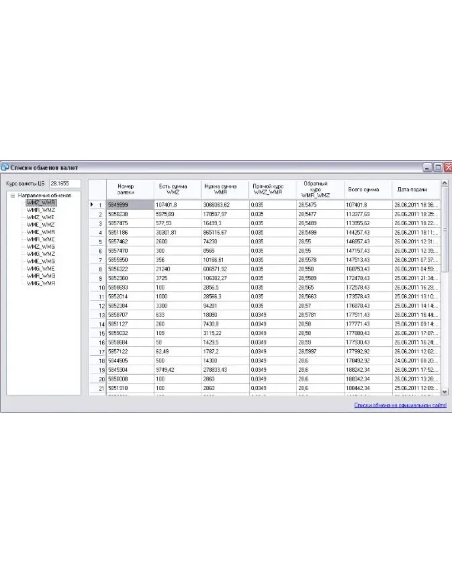 доллары (направление обмена WMR_WMZ). Заявки выставляются с таким