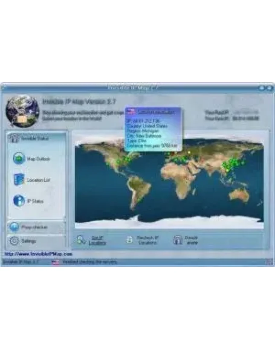 IMap IP - Очень интересная программа для скрытия реального IP адреса и анонимного серфинга в интернете. Оригинальность данной программы заключается в том, что вы можете выбрать найденный прокси... на карте мира и работать через него.