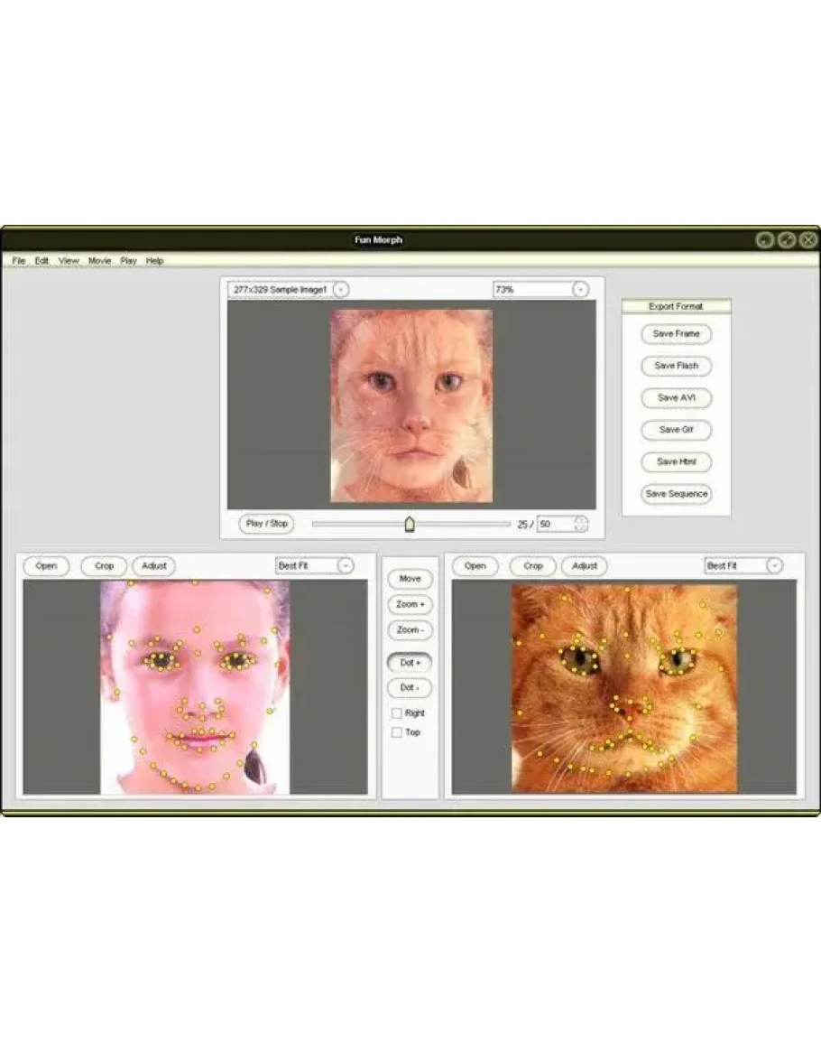 Fantastic Morph - Данная программа позволяет создавать эффект морфинга - плавный переход одного изображения в другое. Также с помощью этой программы можно создавать движение, работая лишь с одним изображением: движение воды, шевеление волос, подмигивание и т.д.
