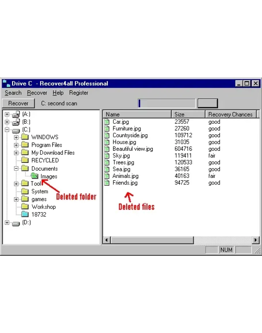 С помощью данной программы Вы можете легко восстановить файлы, которые были случайно удалены под Windows. Не имеет значения, если файлы прошли корзину (и были потеряны, так как с тех пор корзина была освобождена), или были непосредственно удалены. Программа быстра и очень удобна. Удаленные файлы могут быть восстановлены всего лишь несколькими кликами мышки.