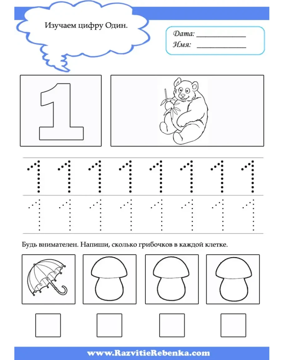 Цель пропись по математике: выучить числа от 0 до 10, научиться их писать и научить считать.