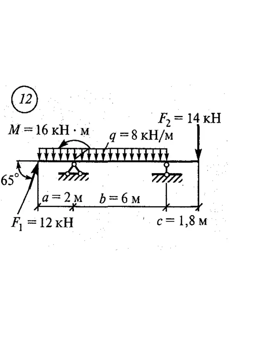 Определение опорных реакций балки на двух опорах.