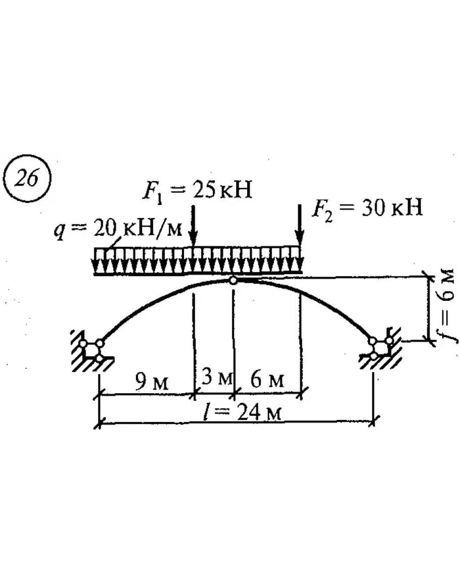 Определение изгибающих моментов, поперечных и продольных сил в пяти точках: опорах, промежуточном шарнире и серединах левой и правой полуарки.
