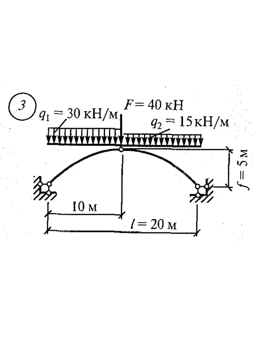 Определение изгибающих моментов, поперечных и продольных сил в пяти точках: опорах, промежуточном шарнире и серединах левой и правой полуарки.