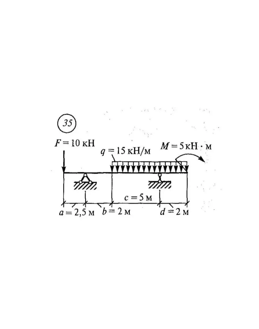 Определение опорных реакций балки на двух опорах. Решение выполнено в соответствии с требованиями из сборника.