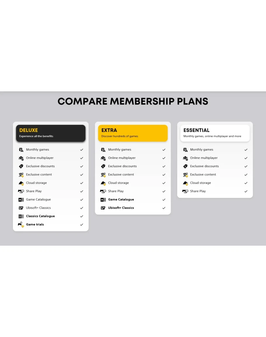 Откройте целую вселенную новых впечатлений с тремя планами подписки PlayStation Plus: получите доступ к сотням игр из каталога игр, каталога классики и пробным версиям.