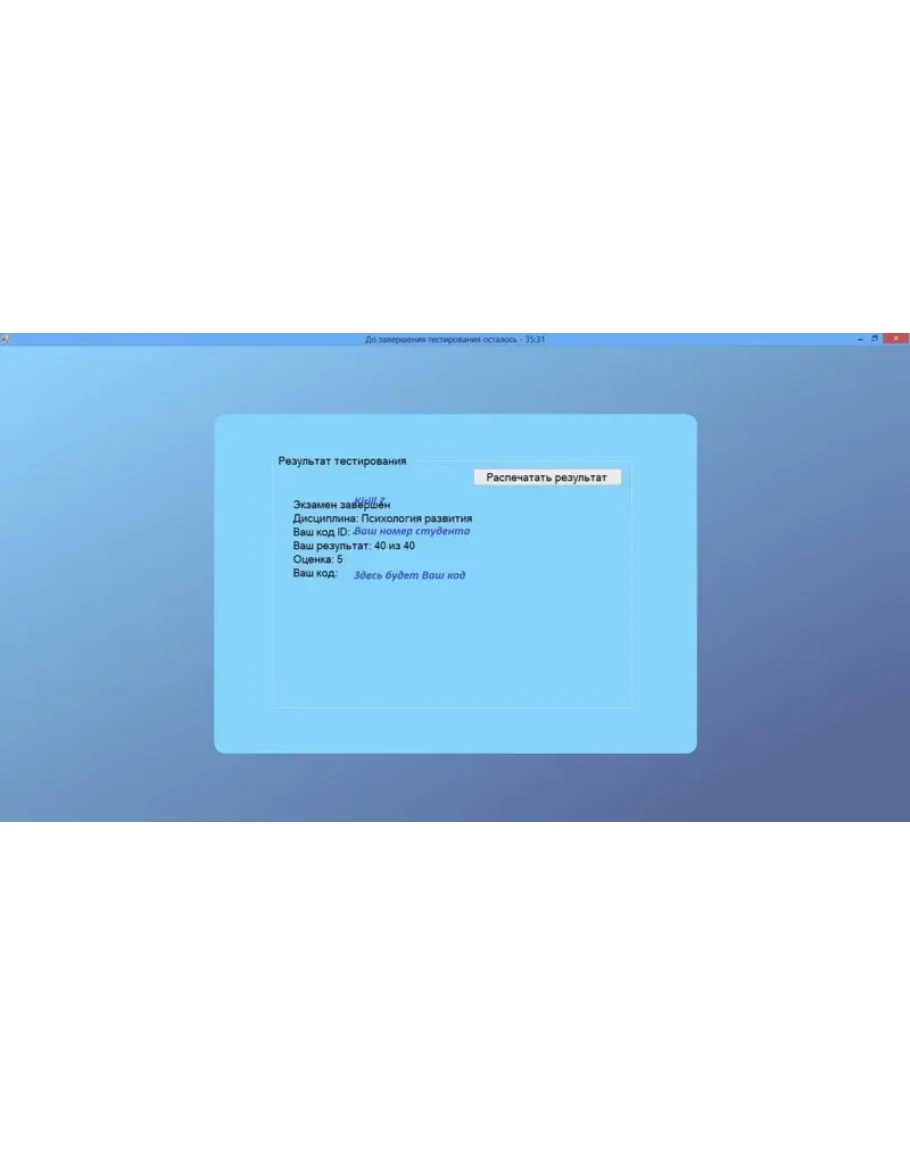 Вопросы в тесте для сверки, в программе Testclient предмет должен называться точно так же как этот: