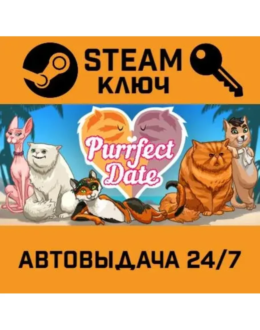 Purrfect Date — смесь визуальной новеллы, сим-свиданий и черной британской комедии. Вам предстоит примерить на себя роль человека, который будет ходить на свидания с кошками и открывать тайны Cat Island (Кошачий остров). Выбирайте собственный путь в игре, очаровывая говорящих кошек, находя баланс между потребностями и пытаясь разобраться в запутанной истории острова.Создатели игры черпали вдохновение в таких новаторских играх, как Undertale, Dream Daddy, Hatoful Boyfriend и Pony Island, а поэтому вас ждет множество неожиданных поворотов сюжета, внезапных открытий и альтернативных возможностей.Все семь глав игры вы будете выполнять роль различных ученых, исследуя и анализируя флору, фауну и население необычного острова, где обитают преимущественно кошки. Исследуя и оценивая аборигенов острова, вы начнете понимать, что эти очаровательные кошечки гораздо интереснее, чем кажется на первый взгляд.666: 6 глав, 6 людей-главных героев, 6 кошек, с которыми можно пойти на свидание.Последняя глава: всё происходящее в последней седьмой главе зависит от выбранных вами персонажей, а также от решений, принятых в шести предыдущих главах.Длинная история: в Purrfect Date больше слов, чем в книге «Гарри Поттер и Тайная комната», благодаря чему играть в нее можно больше 10 часов (время указано для стандартной скорости чтения — 200 слов в минуту). Управляйте уровнями исследования, разведки, романтики и стресса. Вам предстоит найти и поддерживать баланс между романтической и профессиональной жизнью.Любопытство кошку сгубило: вас ждет несколько концовок, различные способы прохождения, тайные истории, а также побочные сюжетные линии.На данный момент полностью доступна только на одном языке: английском.Достижения в Steam и сохранение прогресса в облачном хранилище.Мяузыка и программирование — дело рук OliverAge24, музыканта, блоггера на YouTube и разработчика игр на GameDev. Это его первая игра.Сценарист — Ruby-Mae Roberts. Ruby любит кошек. Ее мама Charon помогала писать сценарий к игре. Мурдивительный художник — Dan Lish, работавший над созданиями таких игр, как Grand Theft Auto 3, Serious Sam и DJ Hero, сотрудничавший с Lucas Arts, Rockstar Games и Sony, а также участвовавший во множестве других проектов, включая создание комиксов, альбомов и граффити.Эта игра посвящена Little Edie и Lush. Пусть их миски всегда будут переполнены скумбрией (и да, они еще живы, кстати говоря).